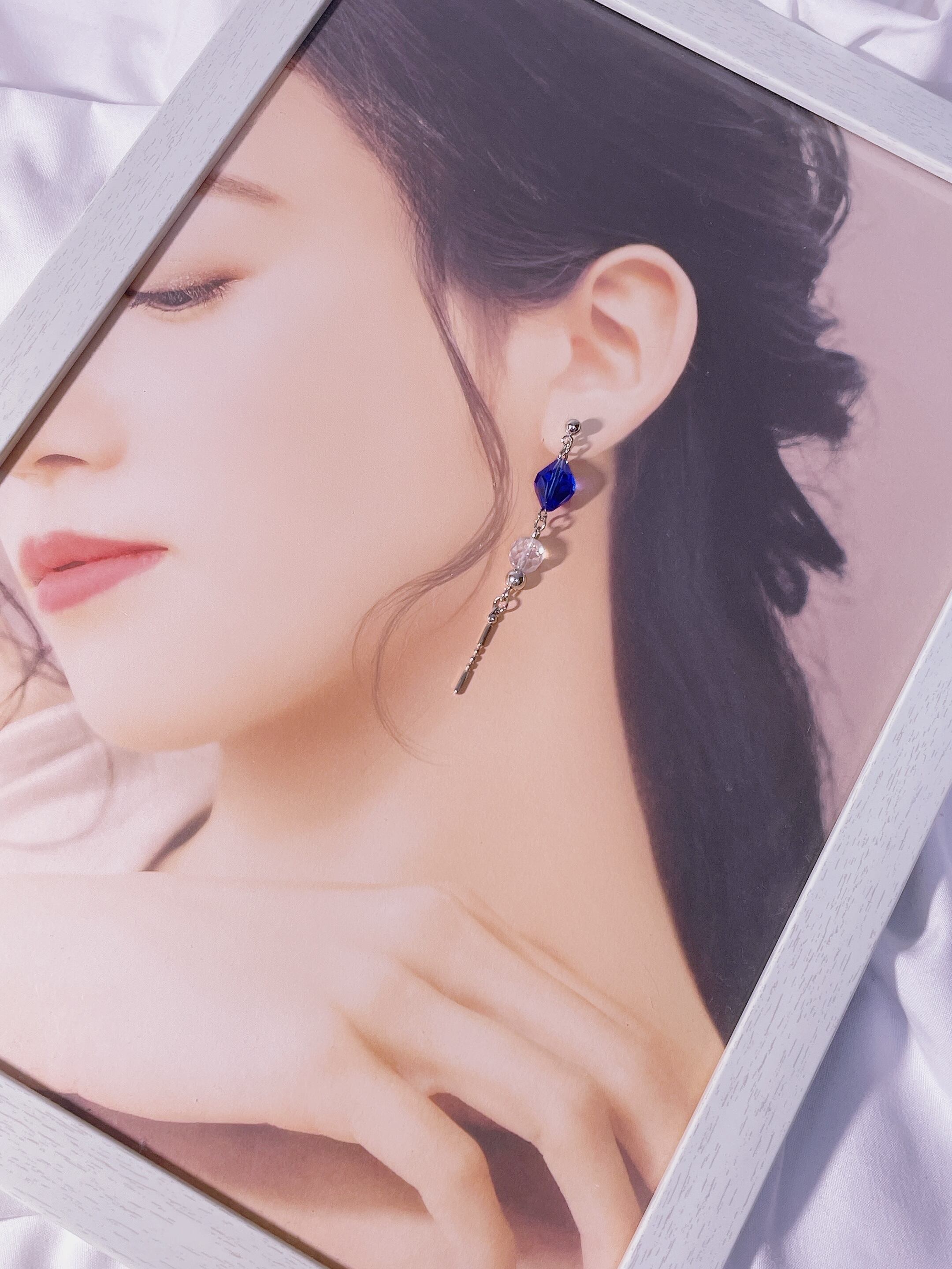 オーストラリアガラス使用のアシンメトリーピアスです